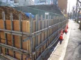 ●型枠工事が完了し、擁壁のコンクリート打設を行いました。