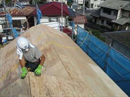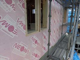 ●断熱張りが終わり、ヒートストッパー(銀紙)を上に張り詰めて2層目の垂木の施工中です。