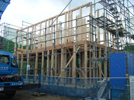 ●I:ただいま2階部分の柱の建て込み