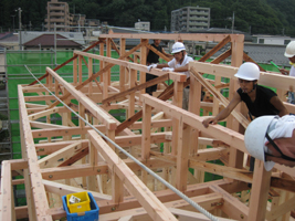●K:桁材取付中です。
