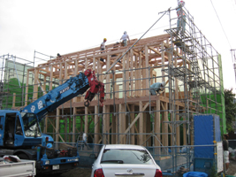●A:今日はいよいよ棟上げです。